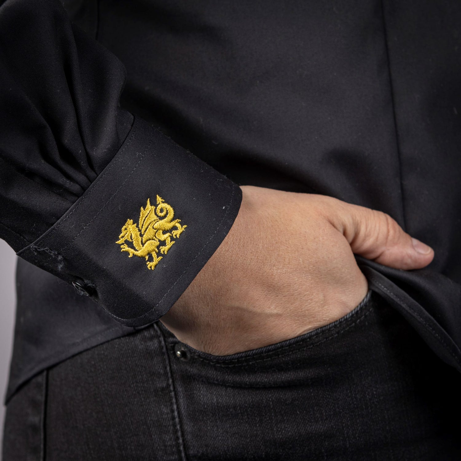 Feel and look your best in this twill shirt. Made with the same finishing treatment as more expensive brands, this non-iron shirt keeps your look sharp—at a real value. Crafted from special 40-singles compacted yarn for enhanced softness and comfort, this shirt will keep you professional looking long past five o’clock. Features the Cambria dragon embroidered on the right cuff. Available in classic black.