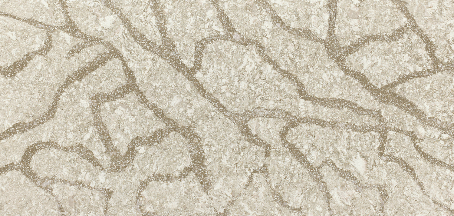 Soft swirls of warm cream and beige are accented with shimmering gold and crystal-white veining to create a gracious and welcoming effect.