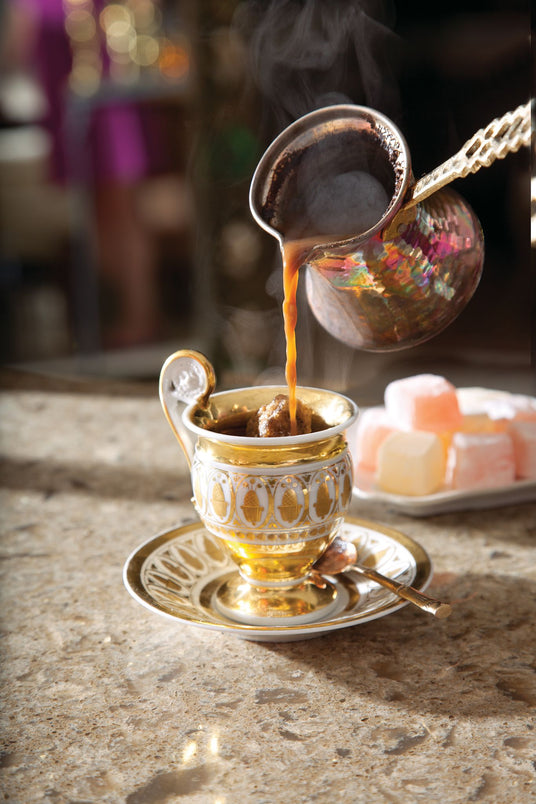 Warm, woodsy tones of brown, taupe, and cream swirl together to evoke a sense of rustic tranquility.