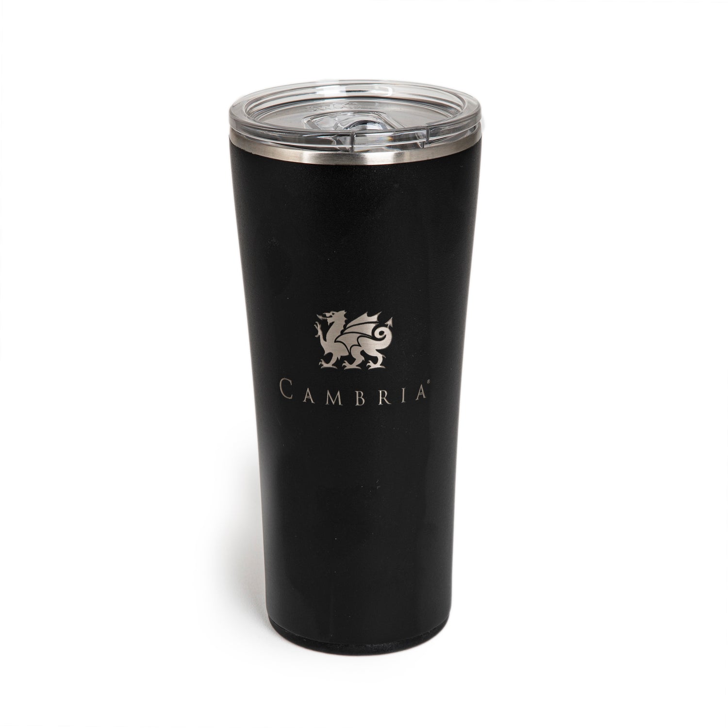 Keep your drinks cold and refreshing or hot and comfortable with this tumbler. It keeps drinks cold for up to 24 hours and hot up to 12 hours. This cup-holder friendly slim shape makes it perfect on the go or at home. Etched with the classic Cambria logo. Dishwasher safe on top rack only.