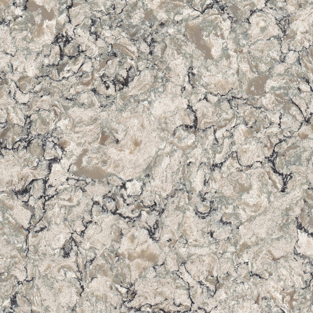 A sophisticated gray backdrop interspersed with streaks of black and aquamarine veining set the stage while splashes of creamy tones and glistening specks add depth and dimension.