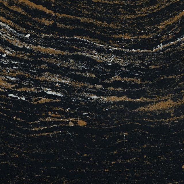 Elegant midnight black and sparkling golden currents flow harmoniously across this tantalizing design, interspersed with white highlights cresting across the wave tops.