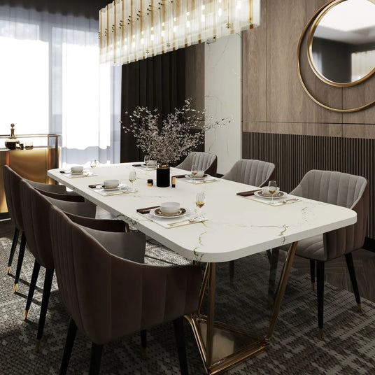 Softly textured brass veins —accompanied by delicate gray accents—jet across a cool, marbled white background, creating a tactile and modern appeal.